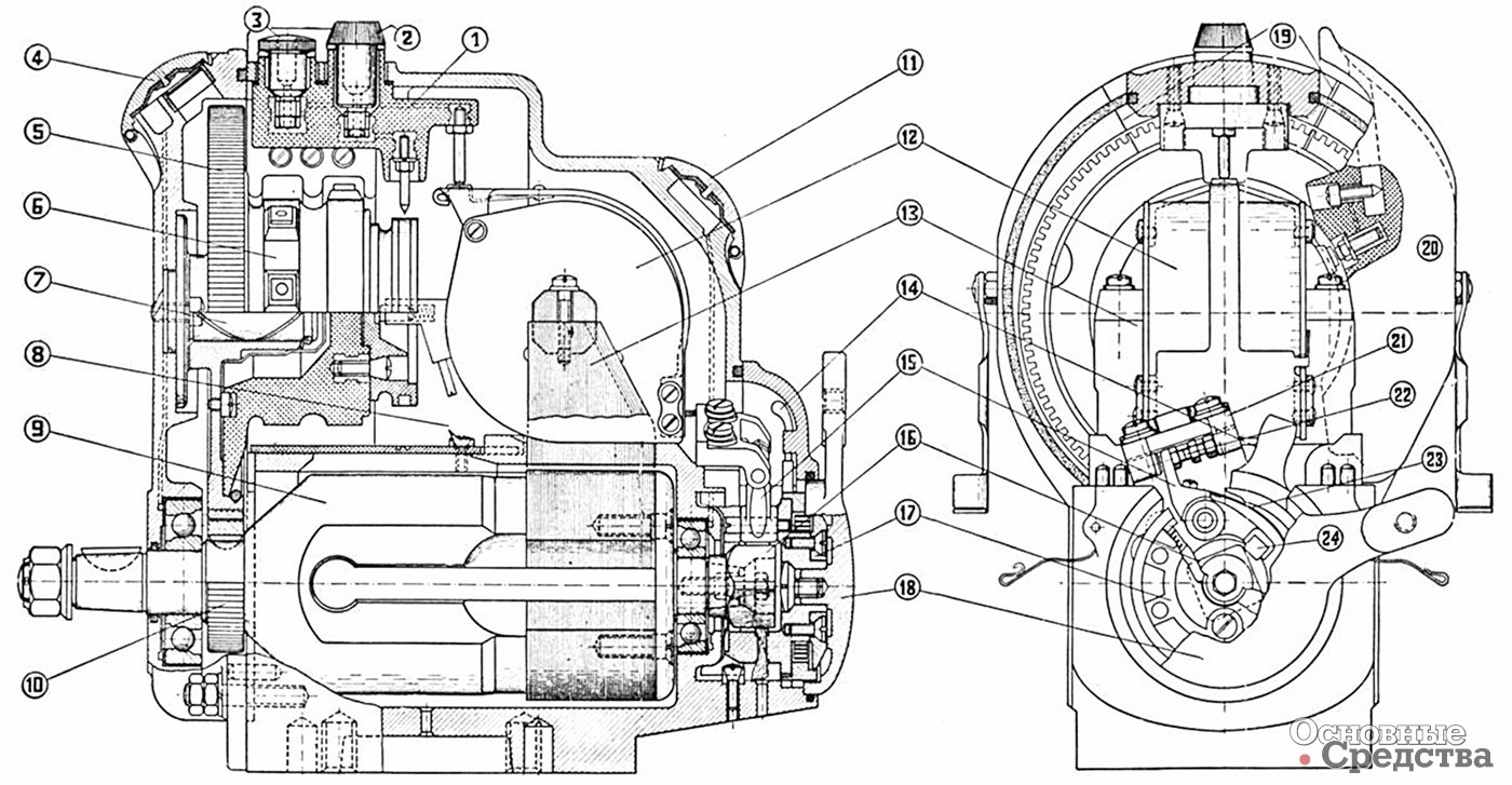 Автощитки уходили в прошлое, но не магнето. На автобусе ЗИС-16 (1938 г.) применялась такая же схема, но по особому заказу устанавливалось зажигание от магнето [14]. Магнето типа СС-6 вместе с электрооборудованием на 12 В, устанавливаемое на газогенераторный автомобиль ЗИС-13 (1936 г.) [15], стало устанавливаться на газогенераторный ЗИС-21 (1938 г.) [16]. Это было связано с тем, что, как показали заграничные опыты, а также длительное экспериментирование на заводе им. Сталина, при нормальной катушке зажигания не получается удовлетворительной искры в условиях работы с повышенной степенью сжатия. Опыты показали, что магнето типа СС-6 уверенно пробивает искровой зазор 0,45 мм. Для облегчения запуска двигателя зимой предполагалось устанавливать обычный ускоритель тракторного типа [17].