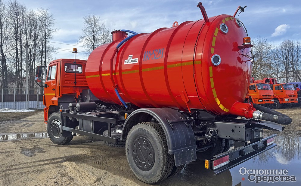 Линейка ассенизационной техники включает машины серии КО-529 с цистернами от 4 до 13 м3, вакуумными насосами собственного производства (производительность от 310 до 750 м3/ч) и зарубежных поставщиков (750–1500 м3/ч).