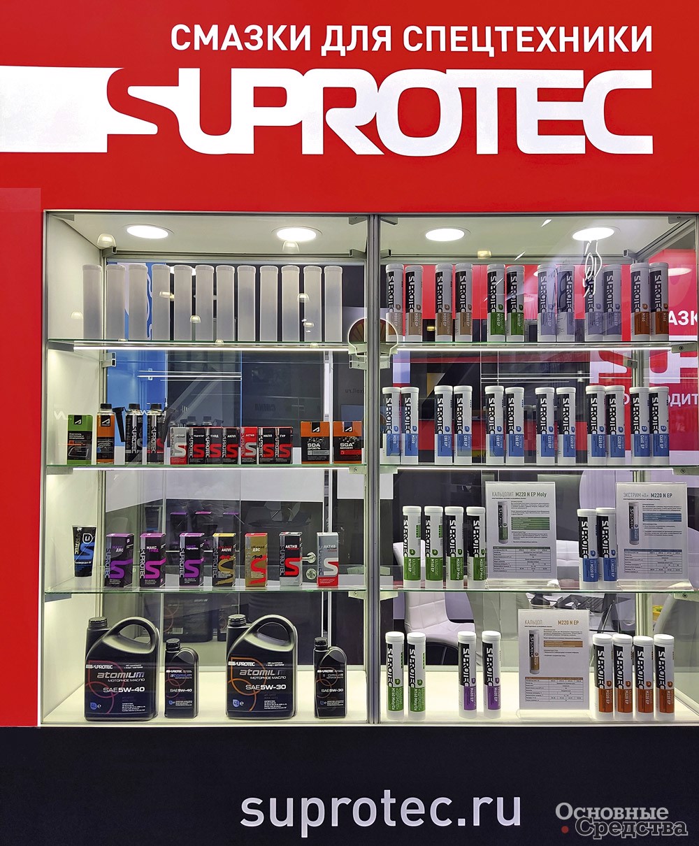 На выставке компания представила триботехнические (снижающие трение) присадки для моторных, трансмиссионных масел; присадки, повышающие октановое число бензина, и очистители топливной системы; пластичные смазки «Экстрим Прайм», способные работать в высоконагруженных узлах трения спецтехники и стационарного оборудования в условиях холодного и арктического климата; средства для ухода за автомобилями, автохимию для обслуживания и защиты кузовных деталей от коррозии и износа; оригинальные моторные, трансмиссионные, гидравлические и индустриальные масла, а также антифризы от ведущих зарубежных и российских производителей для спецтехники, грузовых и легковых автомобилей; моторное масло собственной разработки компании специально для российских условий, которое подходит практически для каждого современного автомобиля, особенно для автомобилей с пробегом, так как имеет отличные противоизносные свойства; и пр. На всю продукцию предоставляются сертификаты качества. Продукты SUPROTEC помогают предприятиям повышать эффективность техники и снижать эксплуатационные затраты.