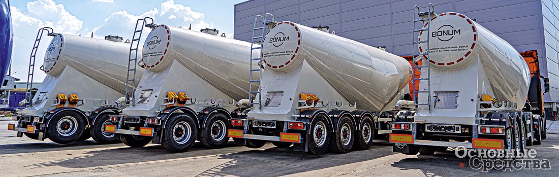 ООО «БОНУМ» (BONUM, г. Ростов-на-Дону) выпускает четыре модели полуприцепов-цементовозов: две на 3-осных шасси и две на 4-осных с вынесенной осью (3+1). Автоцистерны-полуприцепы для перевозки цемента с вынесенной осью позволяют перевозить больший вес, не нарушая установленные нормы нагрузки по осям.