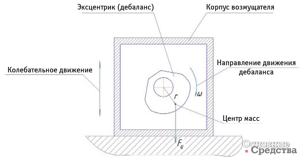 При вращении инерционного элемента с угловой скоростью w развивается центробежная сила Fц=Dw2=m0rw2. Это один из основных параметров, который необходимо учитывать при подборе вибротрамбовки для экскаватора-погрузчика или экскаватора. Это выражение довольно-таки «прозрачно». Обратите внимание, что центробежная сила Fц прямо пропорциональна угловой скорости (частоте вращения) эксцентрика и статическому моменту D. Проще говоря, чем больше масса инерционного элемента, чем дальше смещен его центр масс от оси вращения, тем больше центробежная сила.