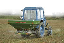 После импортных тракторов старенькие МТЗ-82 смотрелись уныло. Но без этих «рабочих лошадок» не обходится и еще долго не будет обходиться ни одно хозяйство. В сцепе с МТЗ-82 показали установку для внесения минеральных удобрений ZA-M. Удобрение должно распределяться равномерно по всей ширине захвата и в нужном объеме. Кроме того, требуется регулировка угла сброса гранул удобрения, чтобы не повредить подросшие растения. Ширину захвата от 10 до 36 м и угол сброса регулируют с помощью лопастей на распределительных дисках, а норму внесения – регулируя сечение воронки. Эти операции проводят без инструмента, ориентируясь по крупным, отчетливо видимым шкалам.