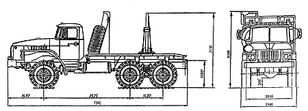Для удобства обслуживания уральского лесовоза установлена небольшая лесенка. Над передним щитом смонтированы фароискатели.