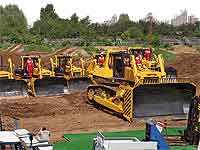 | С 27 по 30 мая в Москве на стадионе технических видов спорта в Крылатском прошла неделя Концерна «Тракторные заводы», одного из крупнейших машиностроительных холдингов России, в ходе которой был переставлен полный спектр техники для строительства, городского, лесного и сельского хозяйства, выпускаемого предприятиями Концерна. Мероприятие прошло под девизом «Сделано в России». Это первое шоу такого масштаба, насыщенности и длительности, проведенное отечественной машиностроительной организацией, что особо значимо сегодня, когда руководство страны поставило задачу выхода в мировые технологические лидеры через инновационное развитие. Особый вес мероприятию придал визит премьер-министра Российской Федерации В.В. Путина. Концерн представлял технику своих основных направлений – промышленную, коммунальную технику, машины и оборудование для сельского и лесного хозяйства. Эти направления легко различить по окраске – в желтый и фиолетовый цвета окрашены промышленные и коммунальные машины, белый и голубой – агротехника, лесная техника отличается разнообразием цветовой гаммы. Промышленные машины представляла техника чебоксарского завода «Промтрактор» – бульдозеры «Четра Н4», «Четра 20», «Четра 11», «Четра 9П», трубоукладчик «Четра Н511», погрузчик «Четра 60». Коммунальную технику – курганский мини-погрузчик МКСМ-1000, владимирские коммунальные тракторы ВТЗ-30СШ-ГМ с грейферным и бульдозерным оборудованием, ВТЗ-30СШ-ПВ с оборудованием вилочного погрузчика, ВТЗ-2032А-КО с подметально-уборочным оборудованием, ВТЗ-30СШ-СП с грузовой платформой и погрузочным ковшом, экскаватор-погрузчик ALEX 2-E на базе ЛТЗ-60. Продукцию «Агромашхолдинга» представляли пропашные тракторы ЛТЗ-60, ВТЗ-2048А, модернизированные волгоградские тракторы ДТ-75 ДЕ-С4 и ВТ 4С-150Д, новая разработка – трактор тягового класса 5 «Четра 6С-315». В сцепе с тракторами показали различные навесные орудия Агромашхолдинга. Гамму красноярских комбайнов составили кормоуборочный комбайн «Енисей-324» и зерноуборочный «Енисей-970». Лесную технику представляли онежский трелевочный трактор «Онежец-310», погрузочная машина на базе трелевочного трактора и харвестер датской компании Silvatec – Sleipner 8266TH. Объем реализации Концерна за 2007 г. составил около 1,3 млрд. руб., что на 30% выше показателя 2006 г, а штат сокращен на 10%. Сокращению численности персонала одновременно с ростом производства придают особое значение и закладывают в бизнес-планы всех бизнес-единиц Концерна. Наиболее востребованы тяжелые тракторы и трубоукладчики; в июне продавали машины, входящие в производственную программу августа этого года. Большая часть техники – 80% поступает на внутренний рынок, 20% экспортируют в основном в страны СНГ – Казахстан, Узбекистан, Киргизию. Основной потребитель в дальнем зарубежье – страны Ближнего Востока, большие перспективы видят в Латинской Америке. На растущие латиноамериканских рынках определяющим фактором считают соотношение «цена–качество», т. е. там Концерн намерен конкурировать с мировыми лидерами по цене. В 2008 г. Концерн планирует дальнейшее улучшение характеристик и потребительских свойств техники. Так, на шоу представили гусеничный трактор ВТ 4С-150Д. Это модификация ВТ 150Д с усиленной коробкой передач, комбинированной подвеской; по заказу предусмотрены гусеницы с резинометаллическ