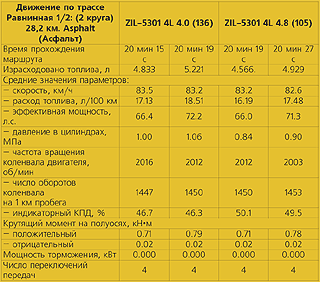 «Бычки» с Д-245 снова оказались экономичнее, причем их отрыв от «американцев» увеличился до полутора литров. Правда, теперь большее сопротивление движению «почувствовали» все машины.