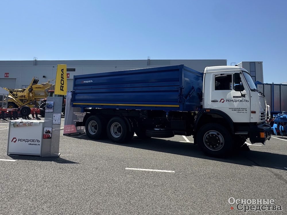 В ходе ремонта автомобиля KAMAЗ-53215 с применением сборочного комплекта деталей (СКД), произведена замена следующих узлов на новые: кабина, ведущие мосты, передняя ось, главные передачи, карданные передачи, электрооборудование шасси, передняя и задняя подвеска. Также на шасси установлена самосвальная платформа с 3-сторонней разгрузкой производства АО «Ремдизель».