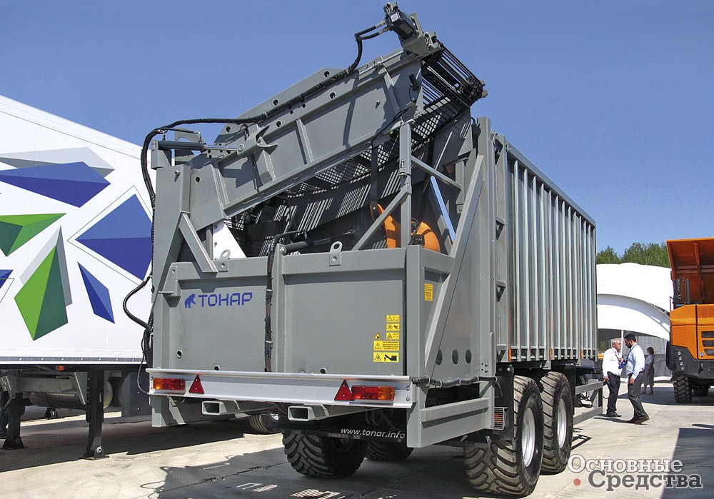 Новый сельскохозяйственный полуприцеп был представлен 4-осным алюминиевым зерновозом ТОНАР-95991 с объемом кузова 50 м3. Снаряженная масса прицепа снижена до 7800 кг. Полуприцеп оснащен системой Hyfix, для фиксации кузова и исключения ударных нагрузок. В базовой комплектации установлены алюминиевые колесные диски, диодная световая сигнализация, дисковая тормозная система, с совмещенными осями.