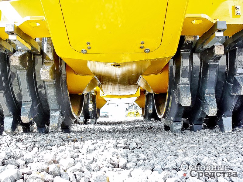 Колеса BOMAG с зубьями повышенной износостойкости обеспечиваются гарантией на износ на 10 000 ч работы. По краям колеса наварена наплавка из твердого сплава для повышения прочности. Уплотнительные зубья из очень износостойкого материала устанавливаются на многоугольные уплотнительные сегменты. И передние, и задние колеса оснащены регулируемыми скребками, предотвращающими забивание рабочих поверхностей и обеспечивающими эффективное уплотнение, особенно когда в качестве материала изолирующего слоя используется глина.