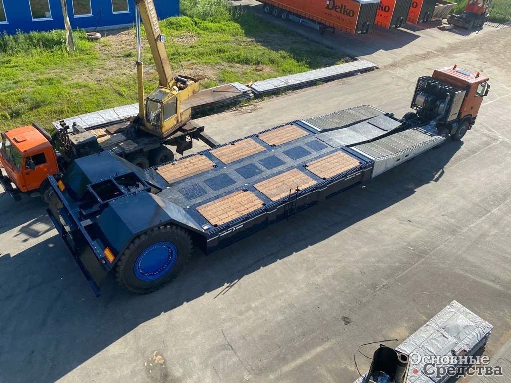 Этот сложный в изготовлении трал после запуска в работу вызывает огромный интерес у заказчиков. Стоит отметить, что ещё один похожий одноосный полуприцеп-трал в текущее время находится в производстве и скоро будет готов к отгрузке клиенту.