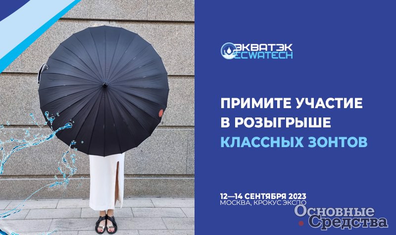 С 29 августа по 1 сентября зарегистрируйтесь на главную выставку технологий и оборудования для водоподготовки, водоснабжения, водоотведения и очистки сточных вод, которая пройдет 12-14 сентября в Москве и примите участие в розыгрыше 3 классных зонтов.