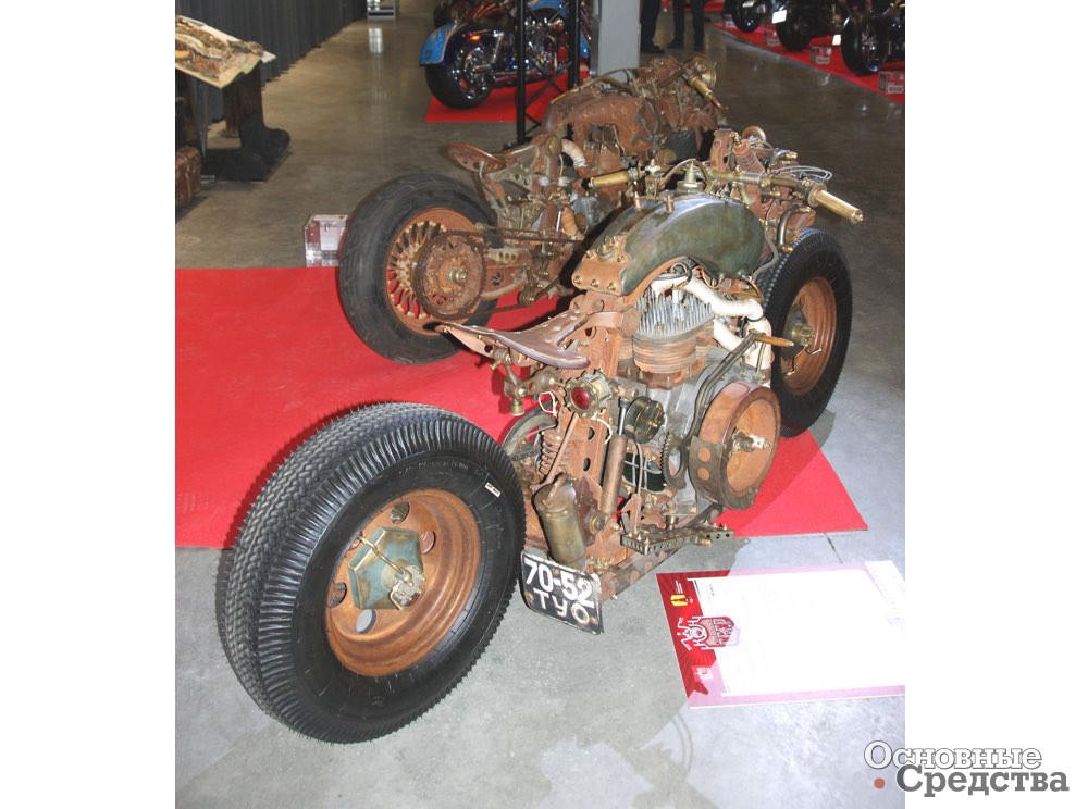 Открывали выставку два арт изделия в стиле RatBikе созданных в Туле Евгением Григорьевым в 2000-2001 гг. и художественный проект «Арт деньги». Самим совершенством выглядели модели мотоциклов.