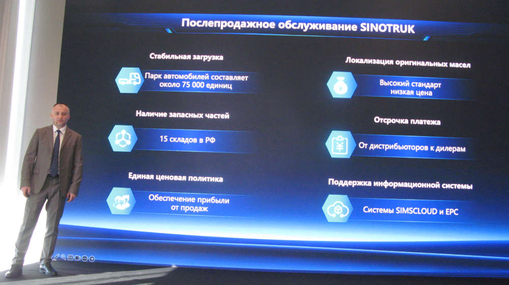 Директор по послепродажному обслуживанию «Синотрак Рус» Михаил Жирнов сообщил, что в настоящее время общий парк грузовиков Sinotruk и HOWO в РФ составляет порядка 75 тыс. ед. Для защиты от контрафакта была проведена работа по ограничению поступления на рынок не оригинальных запчастей.